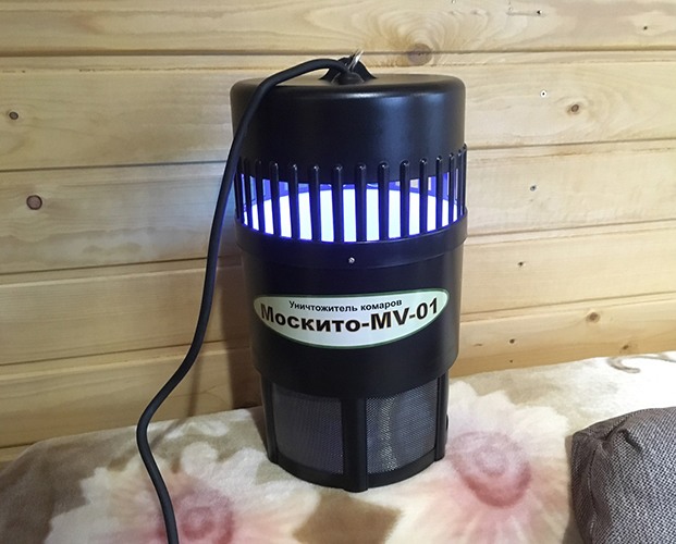 - Ультрафиолетовый свет. Такой способ считается универсальным практически для всех насекомых, включается он только после наступления темноты. Не беспокойтесь за то, что в устройство попадут полезные насекомые, он рассчитан на мелких представителей: гнус, комары и другие.